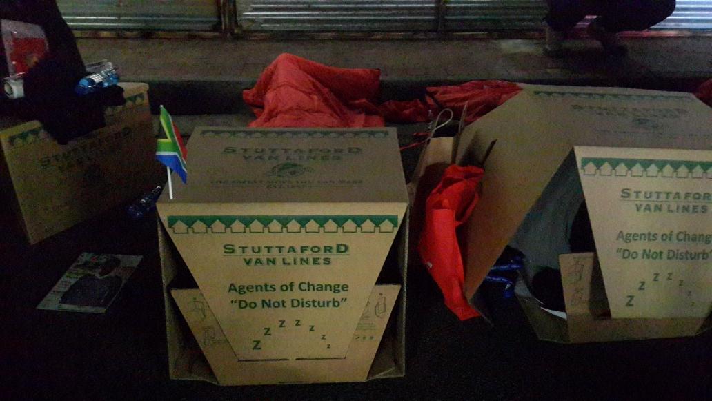 Some did try to sleep, but the hard and cold tar road was not making it easy for them and many were simply moving around like a dog does, turning in circles until their spot is conformable. The cardboard boxes offered a little tunnel bit where the CEO's could bury their heads and try and shut out the wind, cold, noise and light. Very few managed a few moments of sleep and some just gave up to sit around the fires. I am sure that many deals and big things were discussed around those fires. Imagine if we could get all these men and women in the same boardroom to plan our future, South Africa's future, and the way forward to solve all the many challenges we face. Awesome!